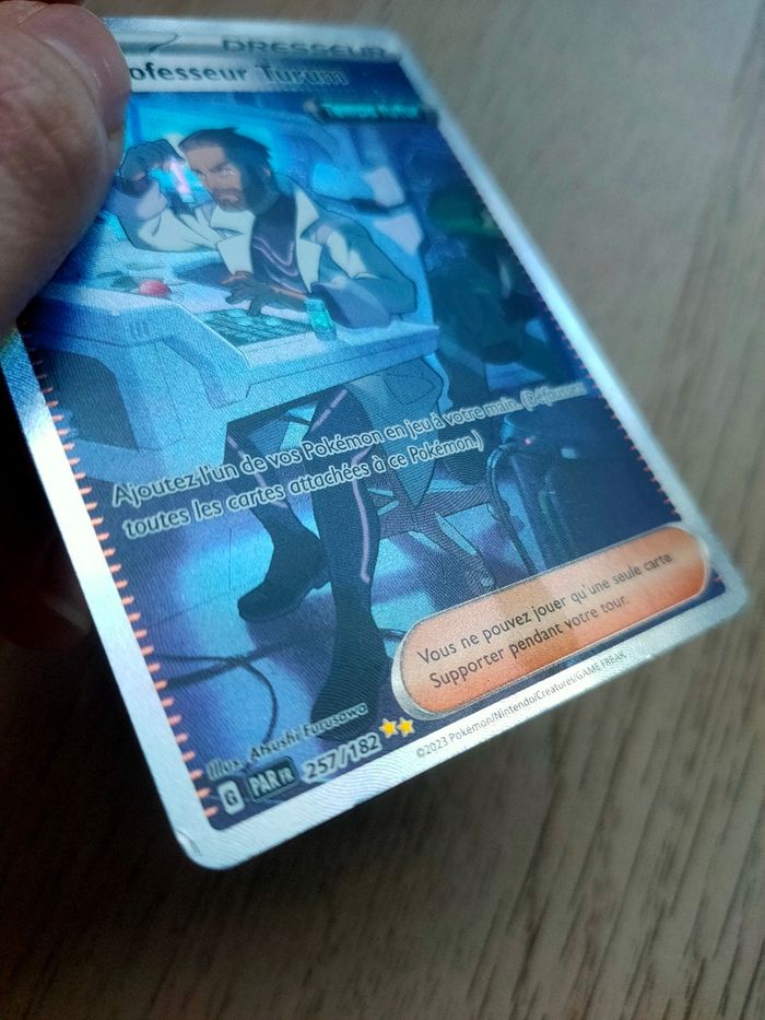 Bonjour, je vends la carte ultra rare Pokémon 257/182 Plan du Professeur Turum de l'extension Faille Paradoxe. La carte est officielle et en français et présente une légère trace d'usure, ainsi qu'un endroit sans relief (voir photo) Prix de la carte: 10€ Prix ferme Livraison possible via le relais de votre choix N'hésitez pas à regarder mes autres annonces ;)