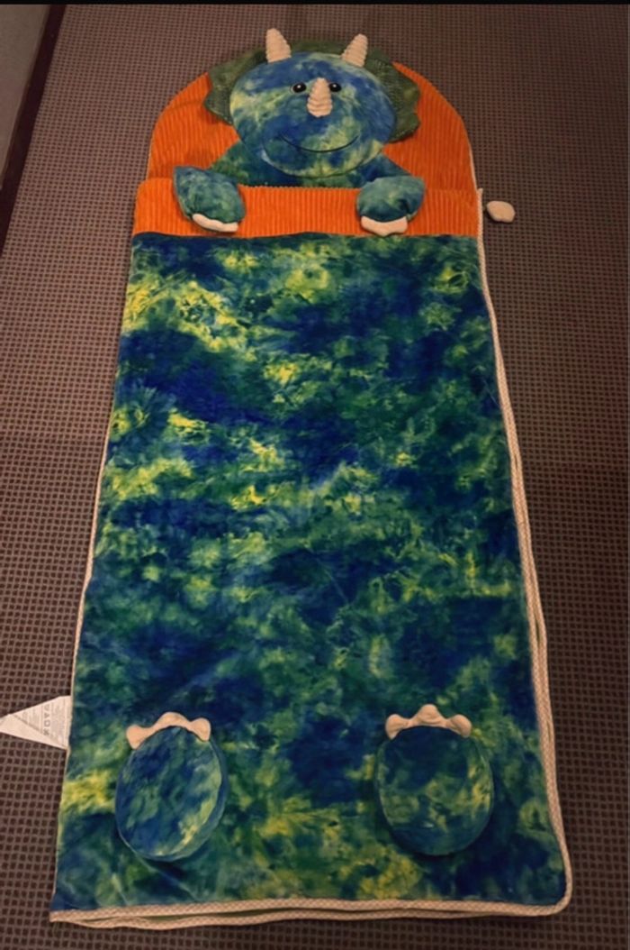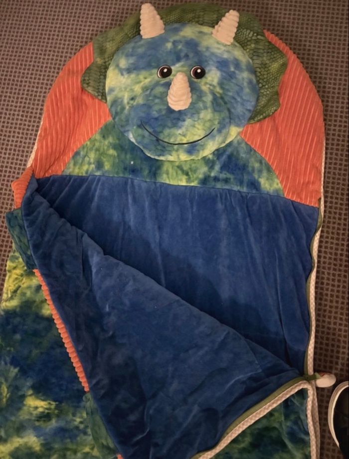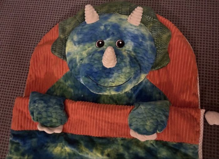 Sac de couchage lit couverture enfant peluche dinosaure tricératops Hug fun Hugfun très bon état - photo numéro 5