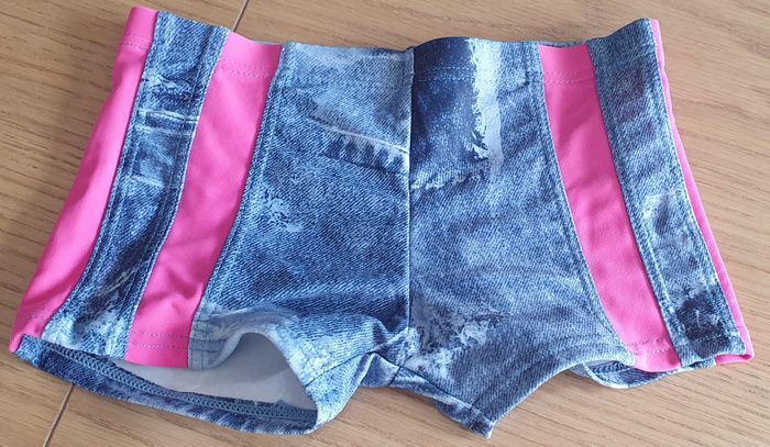 Shorty maillot de bain imitation jean et bande fuchsia
