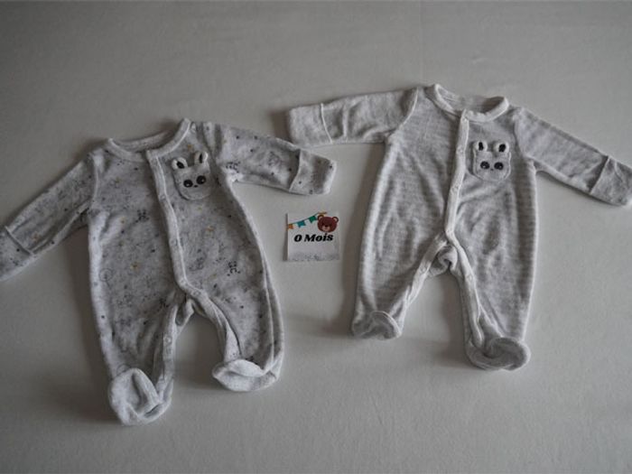 Lot In extenso/Brioche 50 cm Naissance : 2 Pyjamas velours + 2 Bodies ML + 1 Combinaison - photo numéro 2