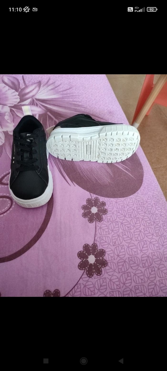 Jolies baskets puma pointure 25 excellent état porté une matinée en intérieur, noire avec petit détail cœur dorée facile à enfiler.