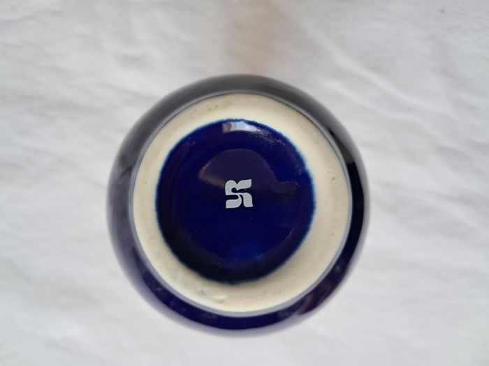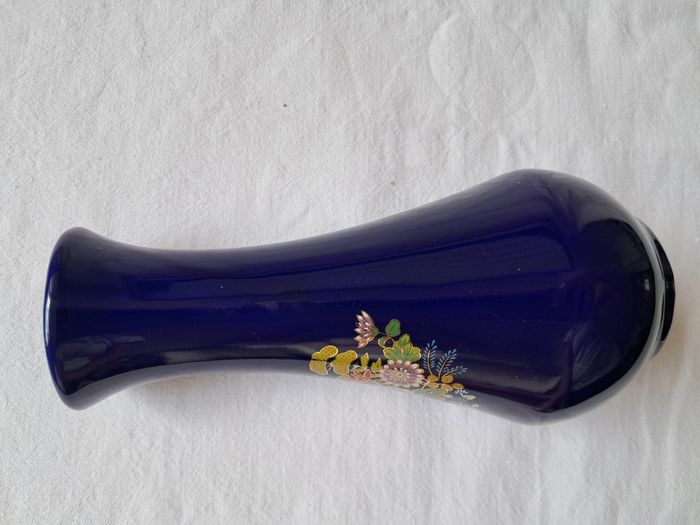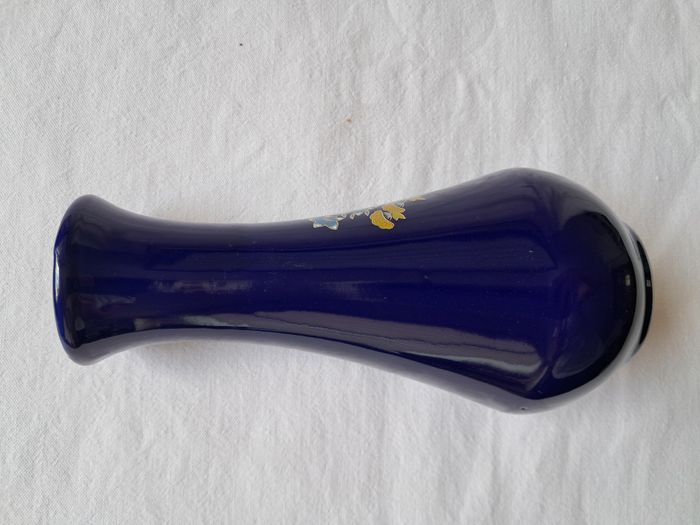 Vase Yves Rocher céramique bleu motifs fleurs Vintage Hauteur : 16 cm Diamètre du col : 3 cm Poids : 220 grammes Très bon état, le liseré or du col est effacé voir photos