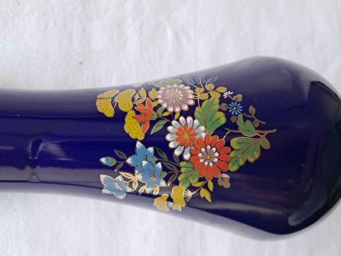Vase Yves Rocher bleu motifs fleurs Hauteur 16 cm vintage - photo numéro 7