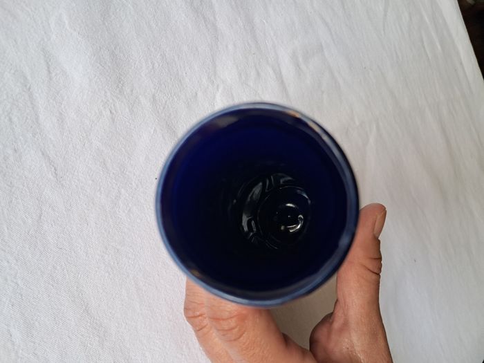 Vase Yves Rocher bleu motifs fleurs Hauteur 16 cm vintage - photo numéro 8