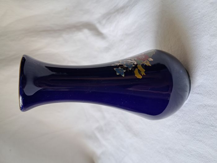 Vase Yves Rocher bleu motifs fleurs Hauteur 16 cm vintage - photo numéro 10