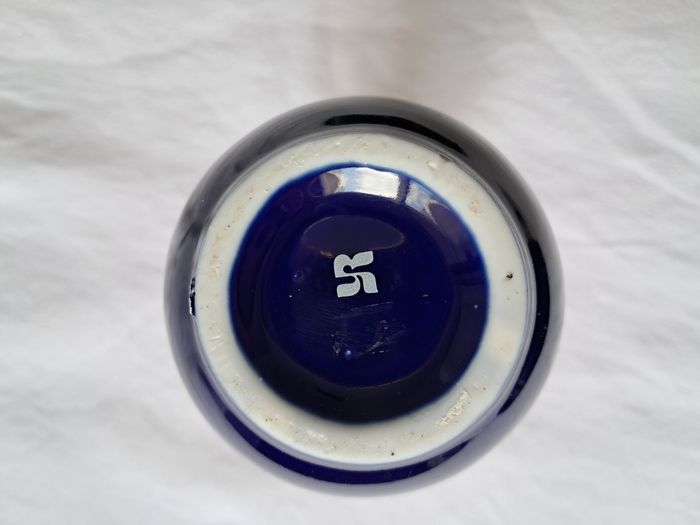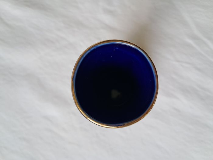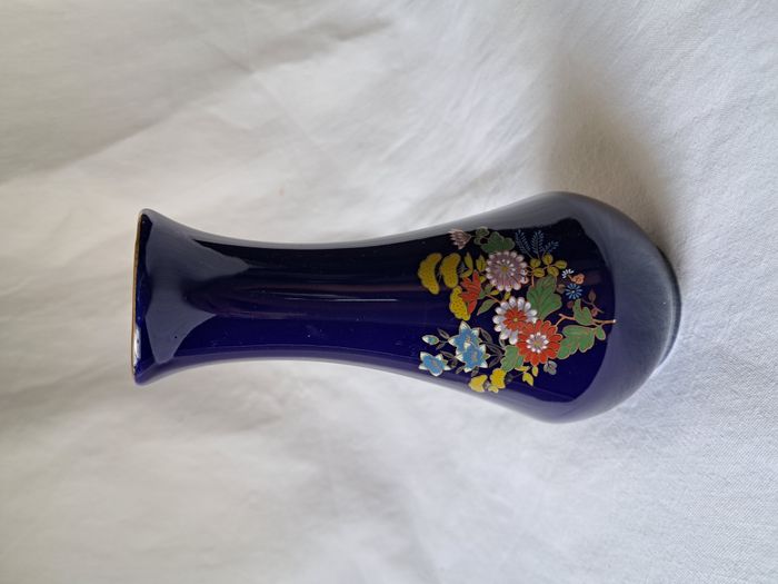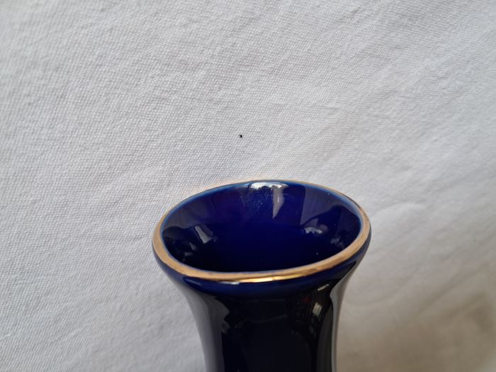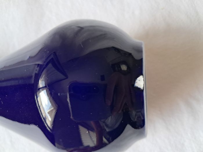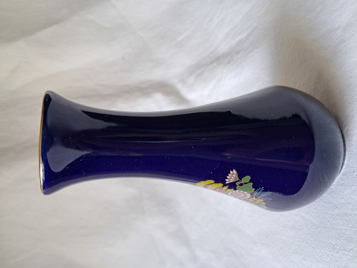 Vase Yves Rocher céramique bleu motifs fleurs Vintage Hauteur : 16 cm Diamètre du col : 3 cm Poids : 220 grammes Bon état Un éclat derrière et des défaut de fabrication voir photos