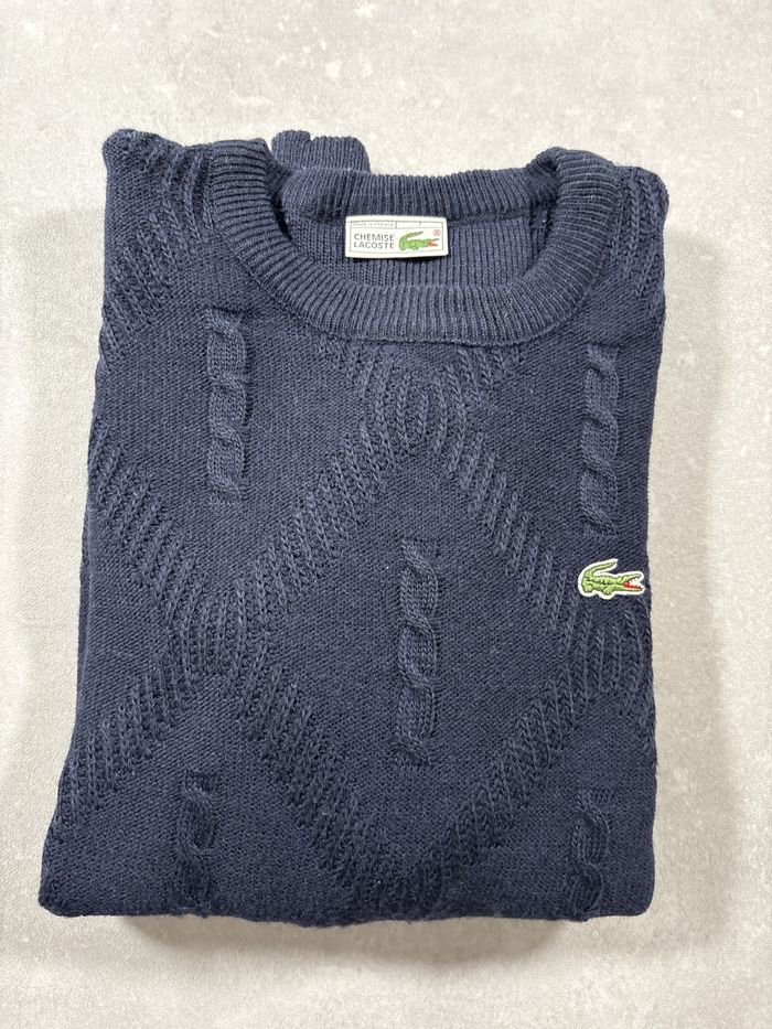 Pull Lacoste bleu marine à torsades 51% Laine Modèle intemporel et élégant Taille XXL Couleur bleu marine En très bon état ✅ Lavé & repassé 📦 Envoi rapide 🚬🐾 Sans fumée ni animaux