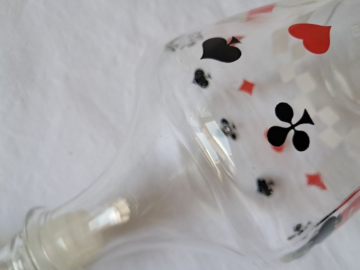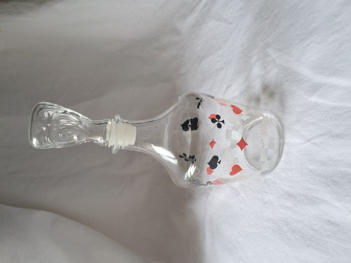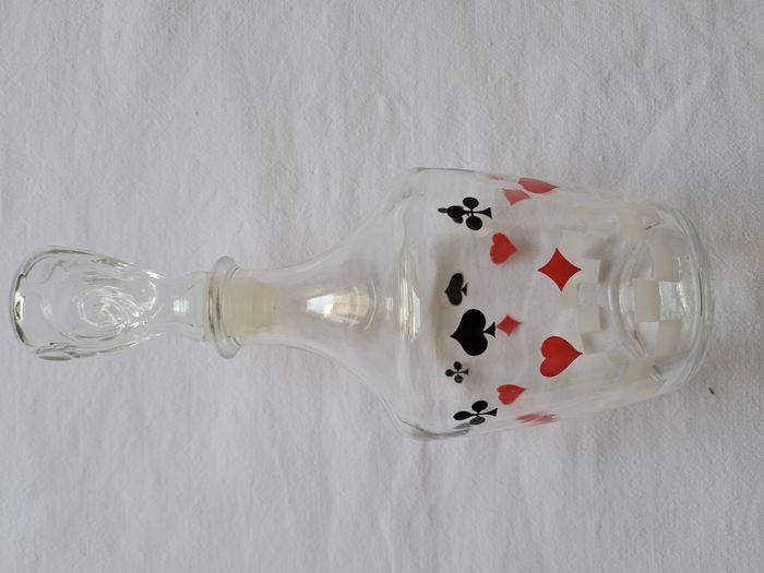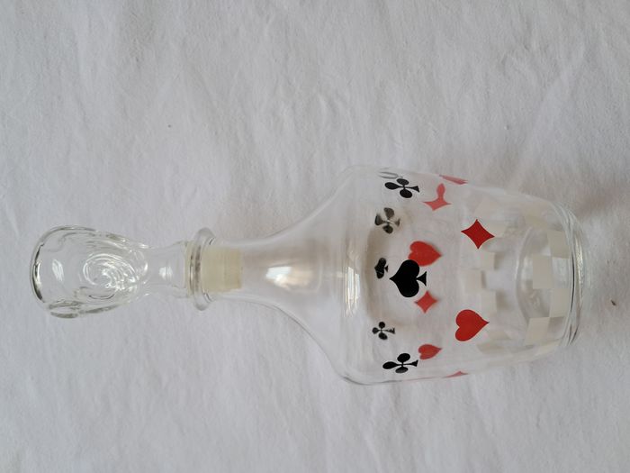 Carafe bouteille en verre 45 cl motif jeu de carte vintage ancien - photo numéro 1