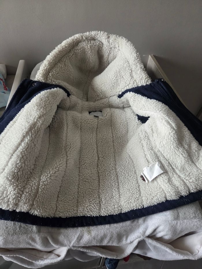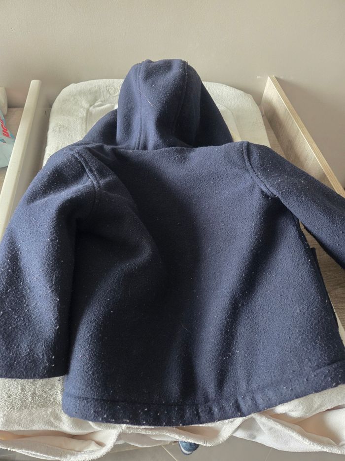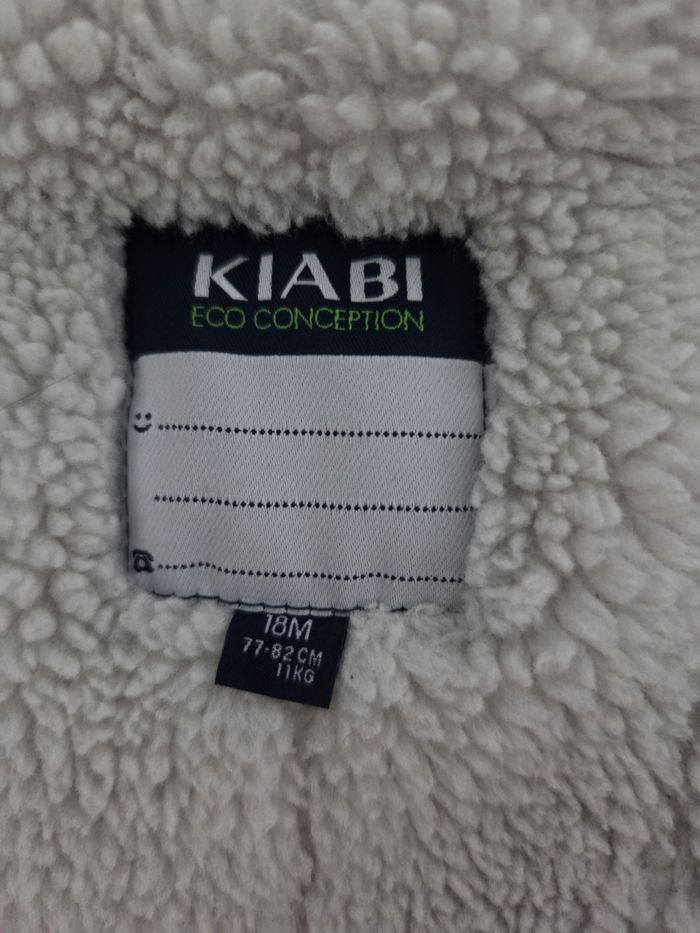 Blouson bébé de la marque kiabi 18mois en bon état avec un bouton de rechange. Le 1er bouton ne tient qu'à un fil. Des peluchures sur la veste voir photo mais sinon epais et tiens chaud