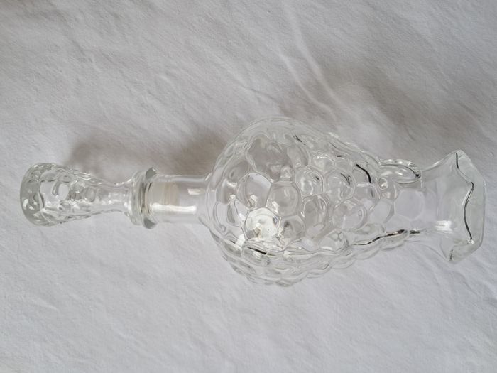 Carafe bouteille en verre en forme de grappe de raisin 50 cl Vintage, ancien Hauteur avec bouchon : 27 cm Hauteur sans bouchon : 19,5 Poids : 615 grammes Très peu servi Très bon état