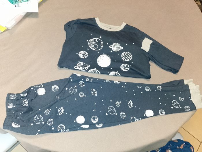 Vends lot 3 pyjamas garçons taille 9 ans très bon état des mini bouloche sur le vert cf dernière photos (le vert dino et le bleu marine planète (je ne sais plus la marque)