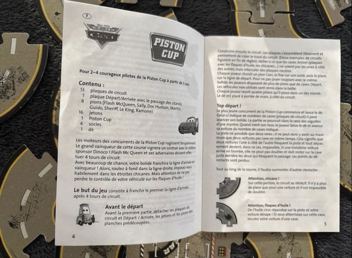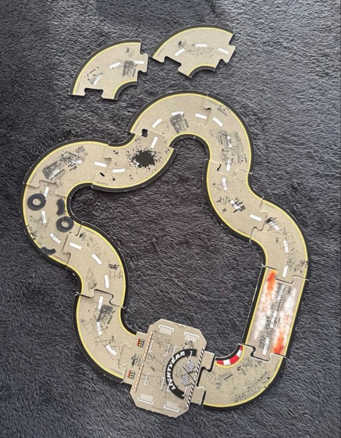 Jeu complet Notice en plusieurs langues dont français Circuit à construire soi même (puzzle) pour se créer de nouvelles pistes pour des parties différentes