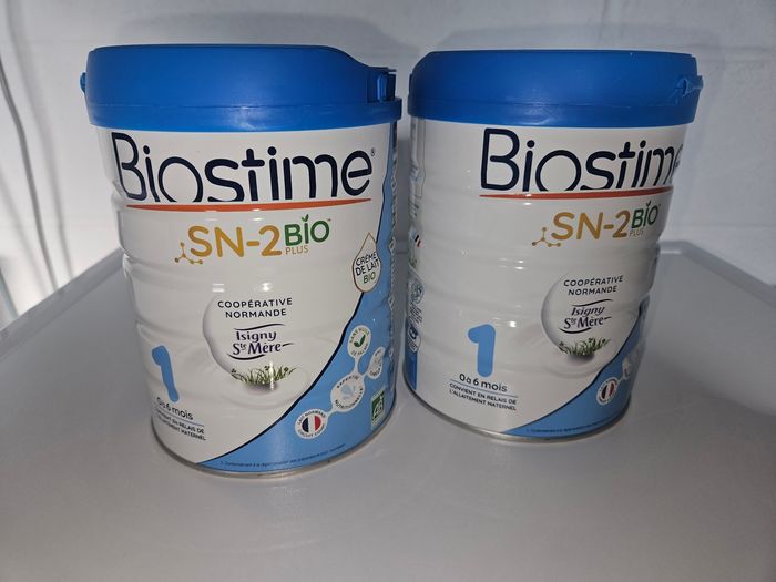 Vend 2 boîtes de lait biostime 1er age. Ne convient plus à ma fille qui passe au 2eme age. Toujours stockés à l'abri de l'humidité et de la chaleur. Périment les deux le 08/04/2026.