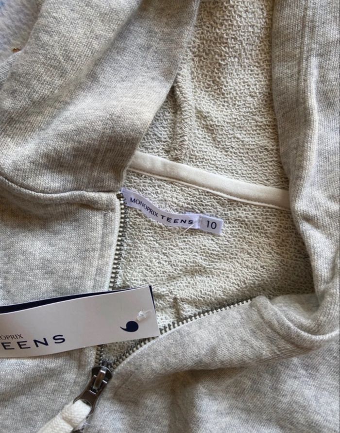 Gilet zippé Monoprix kids gris clair 10 ans neuf - photo numéro 2