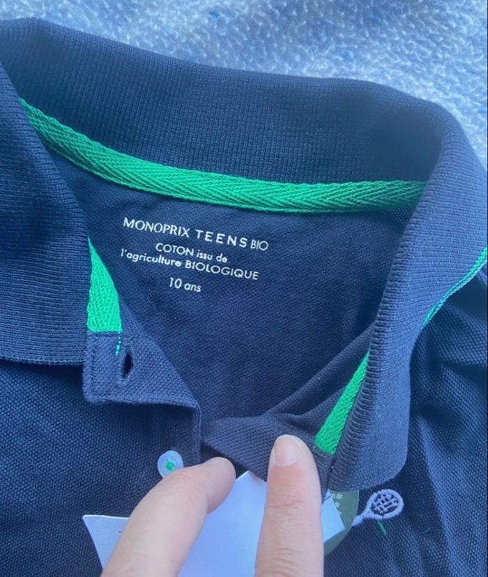 Polo manches courtes bleu marine vert Monoprix teens bio 10 ans neuf - photo numéro 1