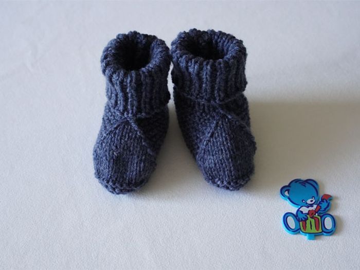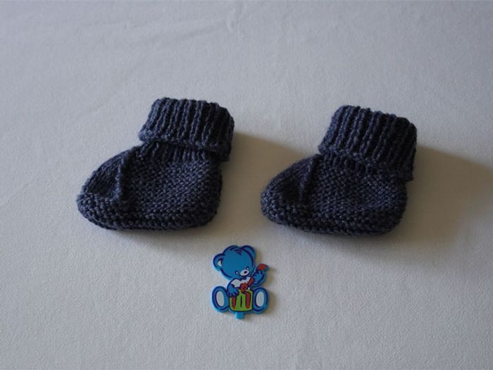 Chaussons en lainage bleus très foncés neufs faits main pour bébé 0/3 mois - photo numéro 1