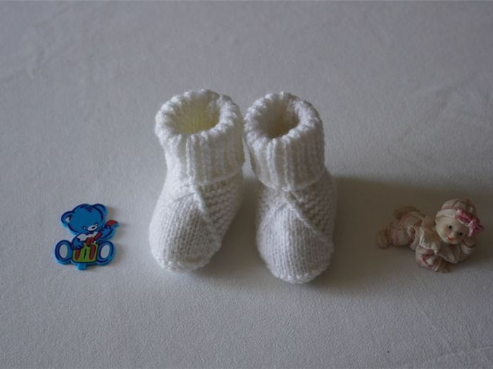 Chaussons en lainage blancs neufs faits main pour bébé 0/3 mois - photo numéro 2
