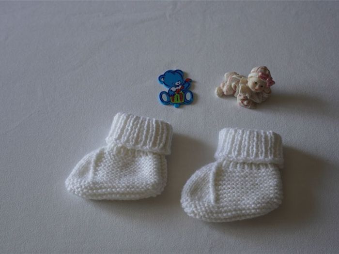 Chaussons en lainage blancs neufs faits main pour bébé 0/3 mois - photo numéro 1