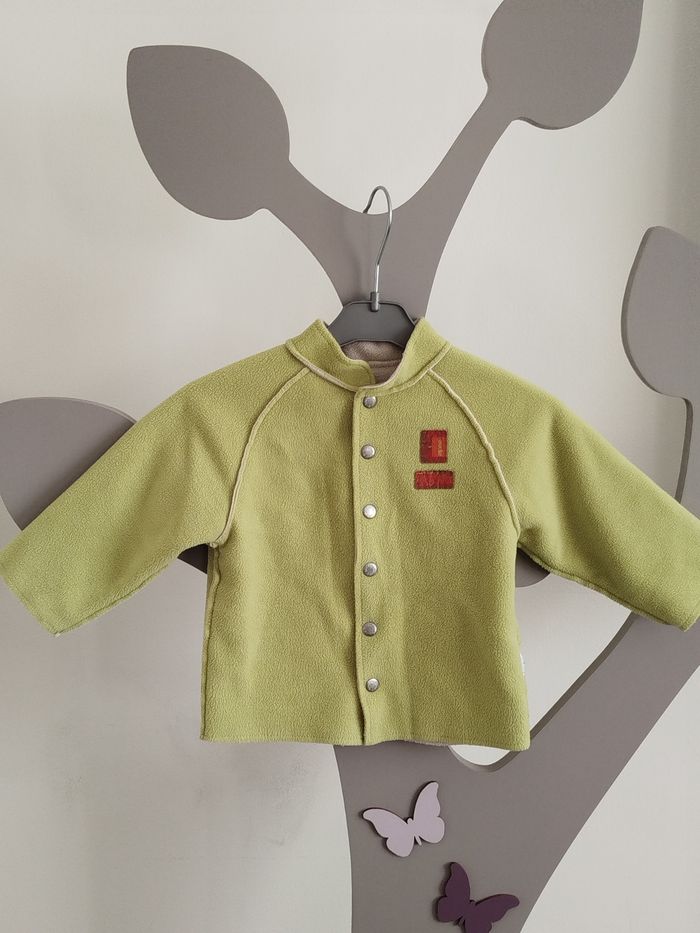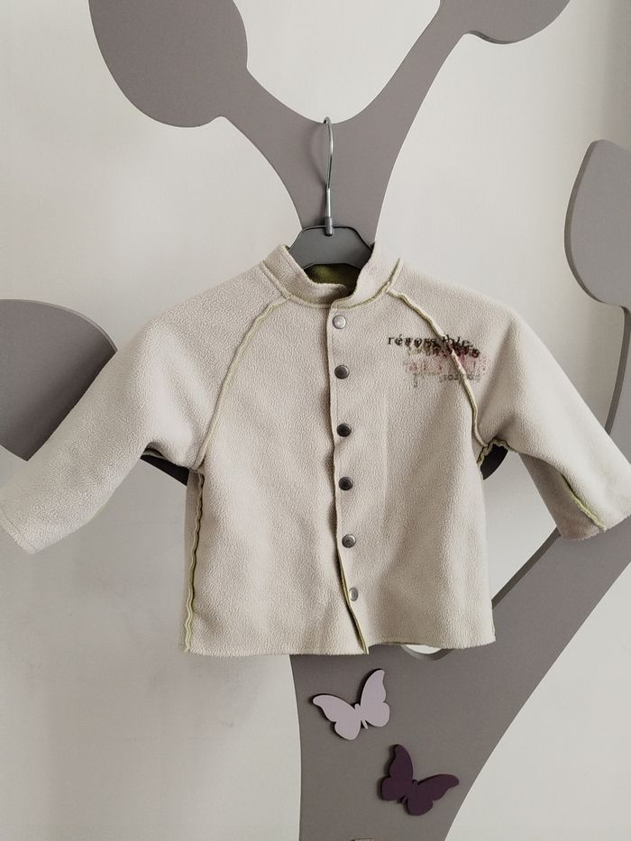 Gilet polaire réversible Vert/ gris Obaibi taille 12 mois  - photo numéro 1