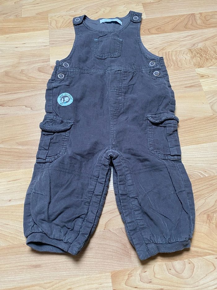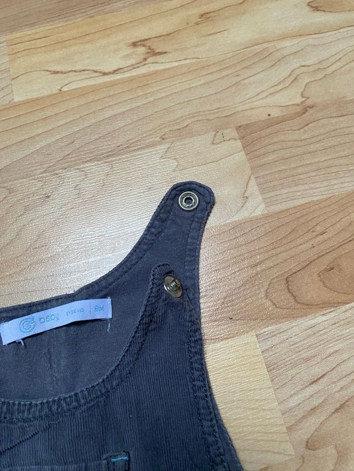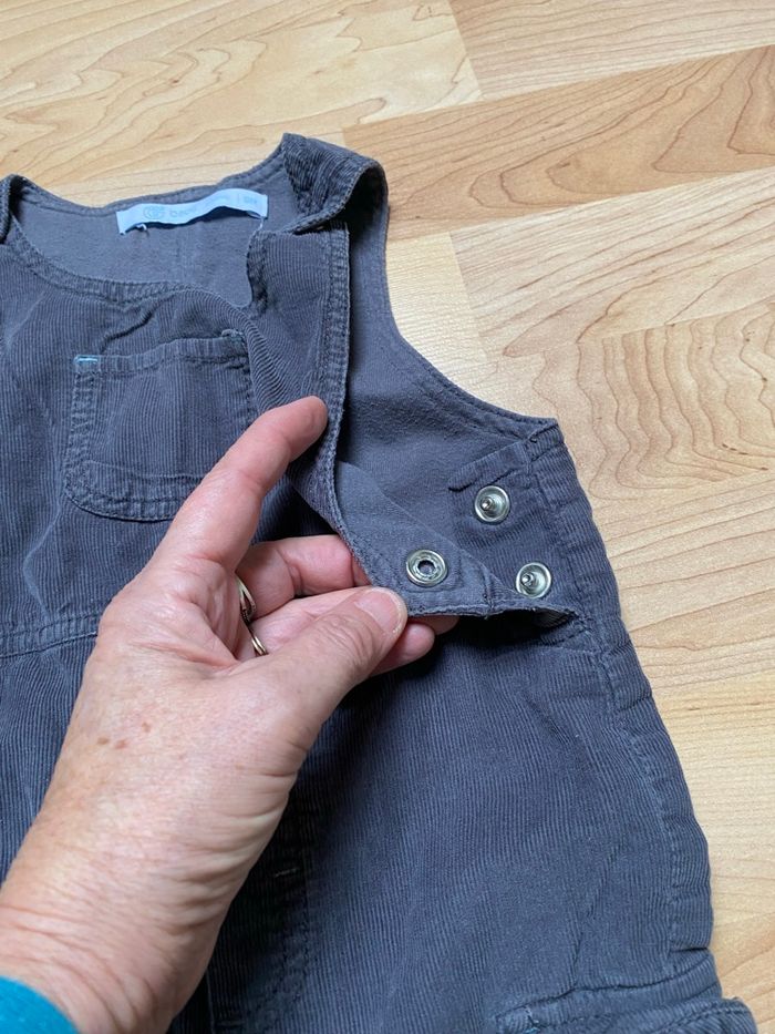 Salopette combinaison « G baby by Gemo » 9 mois en velours côtelé fin, gris foncé Pressions a l’entrejambe, sur le côté et bretelles (voir photo 3,4 et 5