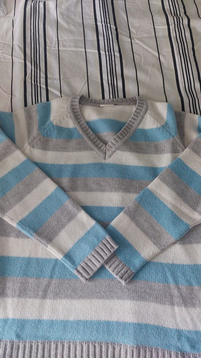 Pull à rayures bleu blanc gris - photo numéro 1