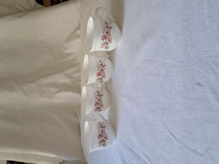 Lot de 4 tasses Arcopal Florentine motifs fleurs Diamètre : 7 cm Dimensions : 9,5 x H 6,5 cm Poids : 120 grammes x 4 Très bon état