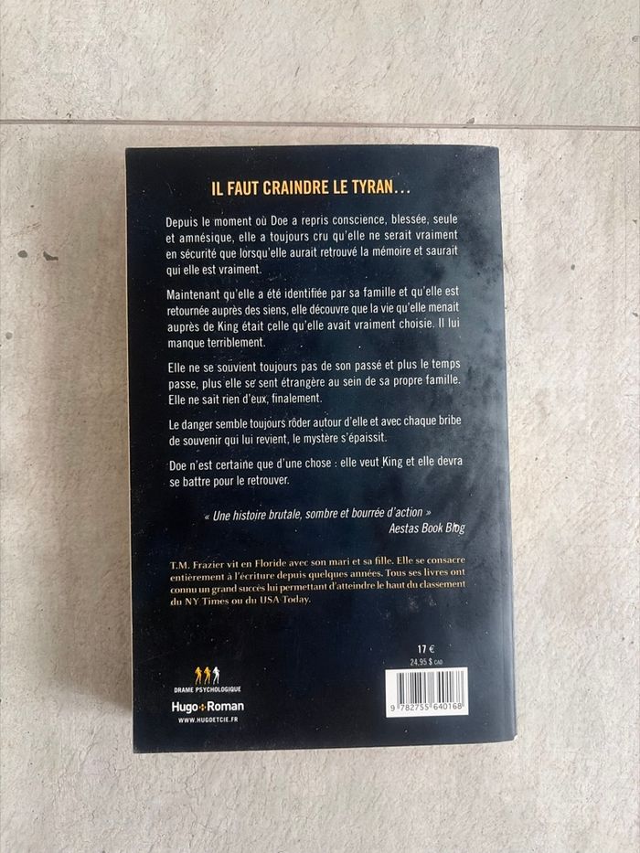 Je vends ce roman "Tyran" de T.M. Frazier, tome 2 de la série Kingdom. - Titre : Tyran - Auteur : T.M. Frazier - Genre : Roman - Éditeur : Hugo - Tome : 2 - Format : broché Bon état N'hésitez pas à me contacter pour plus d'informations ! Envoie rapide et soigné