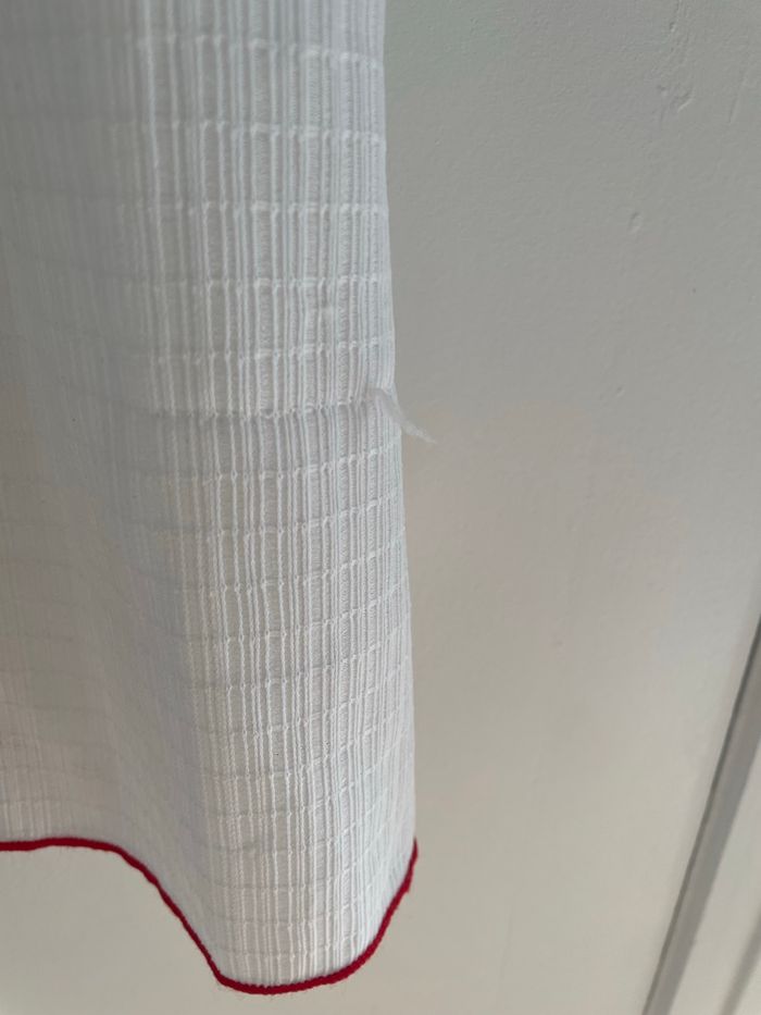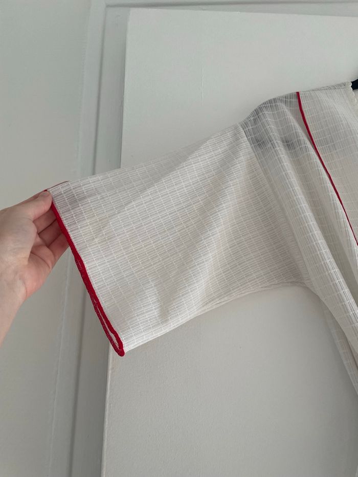 Description : peignoir / kimono / déshabille (comme vous préférez) long Vintage 100% polyester Taille / pointure : M Couleurs : blanc rouge Détails : petite dentelle et file rouge Marque : c&A Défauts : quelques fils tirés / voir photos Très bon état général #vintage #vintagestyle #kimono #c&a