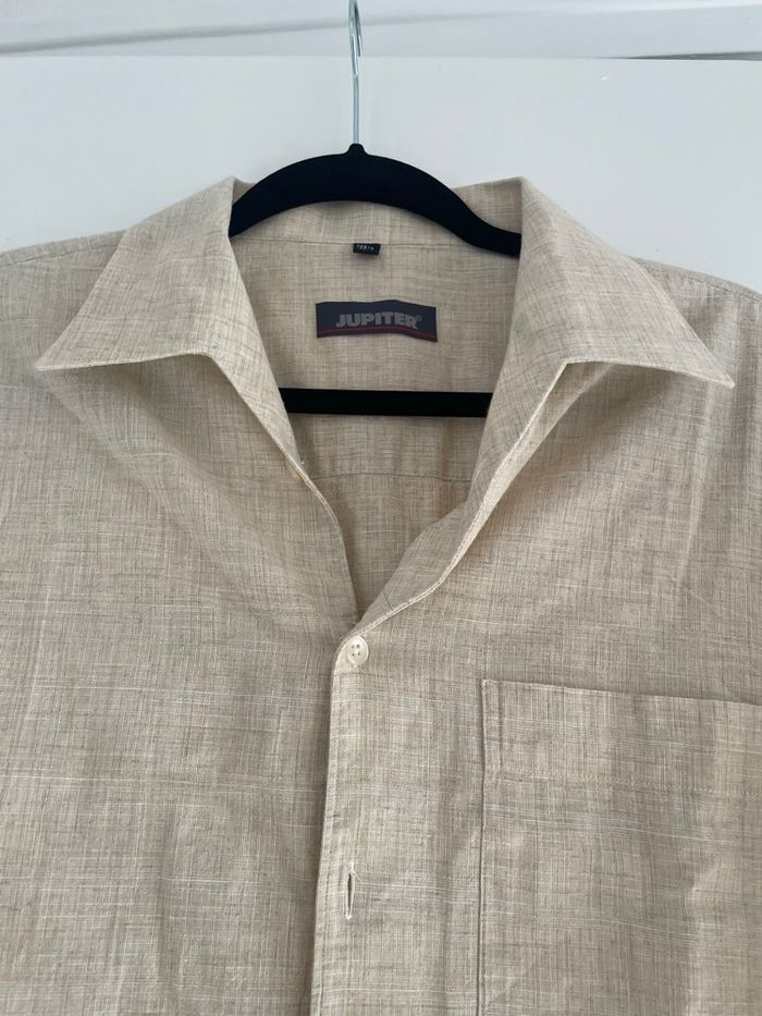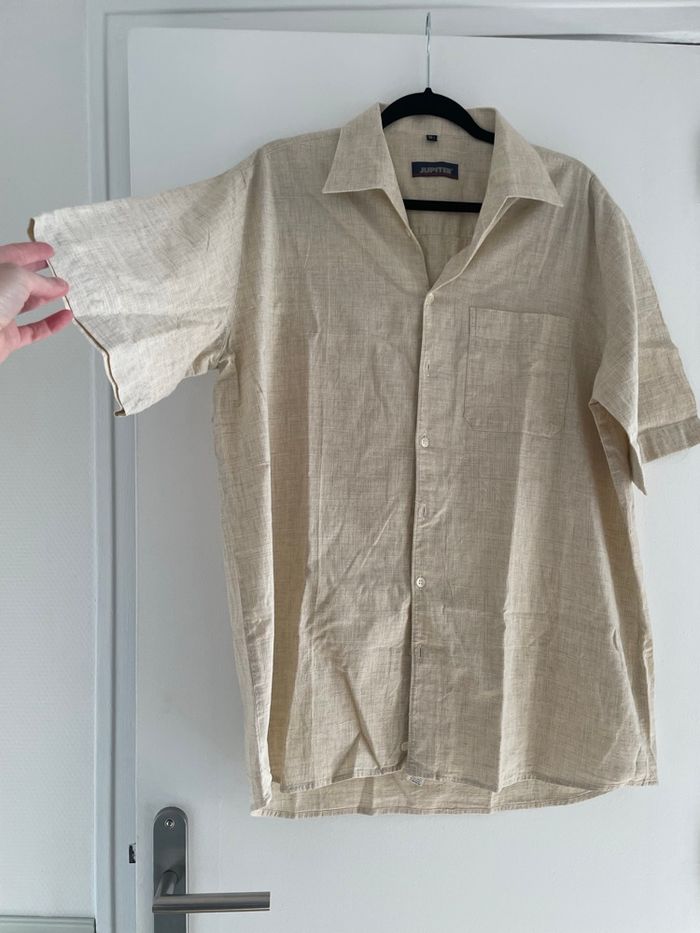 Description : chemise à manches courtes / style effet lin pour homme Taille / pointure : L Couleurs : crème beige Détails : manches courtes / poche avant / à boutons Marque : Jupiter Défauts : Très bon état général #chemise #chemisehomme #jupiter #vintage