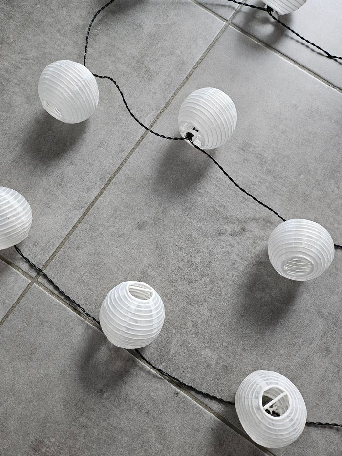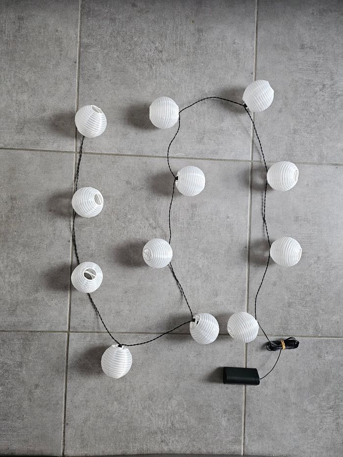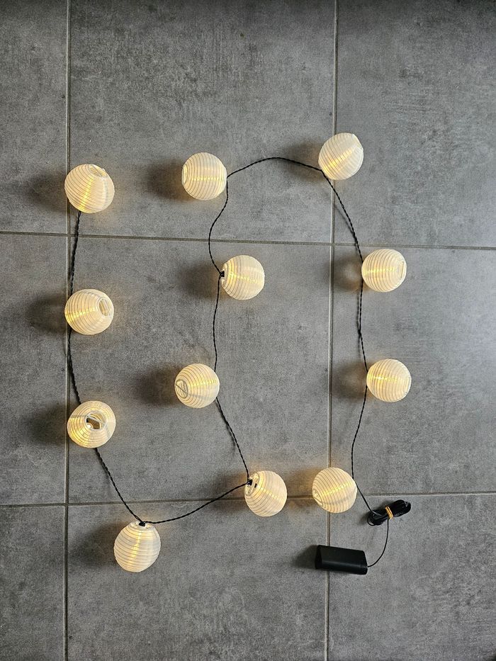 Guirlande lumineuse Led 12 ampoules 2 intensités Piles incluses Décoration Lumière Lanternes Boules papier Asie Asiatique Japon Envoi soigné