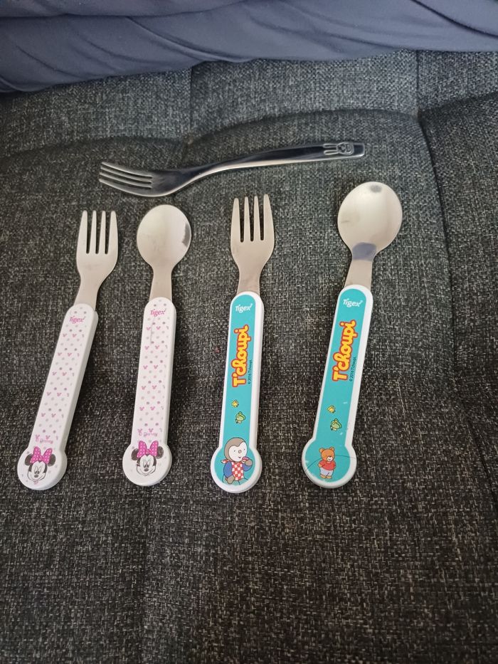 Lot de 5 couverts bébé fourchettes et cuillères Minnie et T'choupi