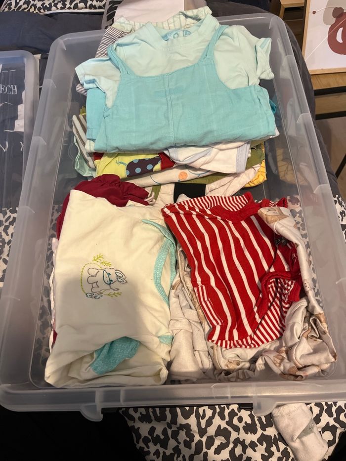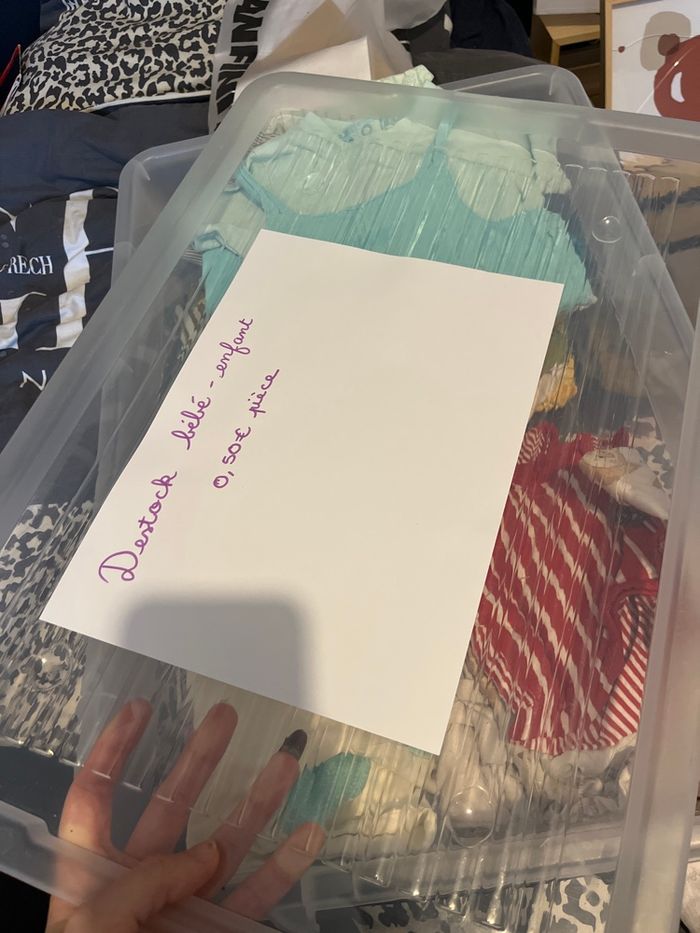 ‼️ BIEN LIRE L’ANNONCE ‼️ Je déstocke une grande partie de mes vêtements bébé. TOUT À 0,50€ PIÈCE ! J’ai de toutes tailles (parfois je n’ai que 1 ou 2 vêtements de chaque taille). Voici la liste du nombre de vêtements avec la taille et le « genre » qu’il me reste. Si vous êtes intéressé(e) n’hésitez pas à m’envoyer un message !! Vêtements garçons : - 1 mois : 1 salopette, 1 short, 2 hauts simples, 1 ensemble - 3 mois : 1 body sans manches, 1 haut simple, 1 combinaison - 6 mois : 2 pyjamas, 2 chemises, 3 combinaisons, 2 hauts, 1 salopette Vêtements mixtes : - 1 mois : 2 bodys manches courtes - 3 mois : 1 combinaison - 6 mois : 3 pyjamas sans pieds - 9 mois : 1 body manches longues Vêtements filles : - 3 mois : 2 hauts, 1 pantalon - 6 mois : 1 robe de cérémonie - 12 mois : 1 pyjama