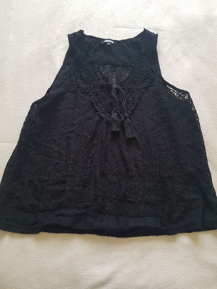 Top noir taille M Liberto Top ajouré, voir photo. Lien sur le devant. Encolure V
