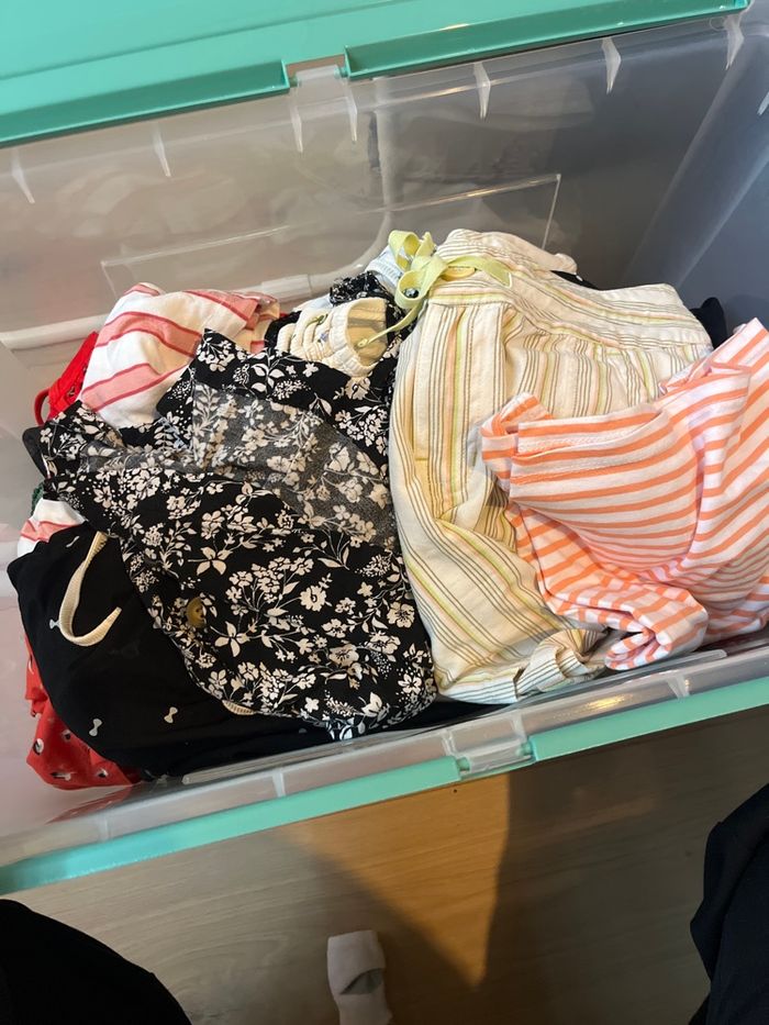 ‼️ BIEN LIRE L’ANNONCE ‼️ Je déstocke une grande partie de mes vêtements femmes. TOUT À 1€ PIÈCE ! Les tailles vont du XS/34 jusqu’au M/38. Les vêtements sont en bon état jusqu’à très bon état. Il y a des vêtements d’été et d’hiver. N’hésitez pas à m’envoyer un message si cela vous intéresse. Je pourrais vous envoyer des photos !
