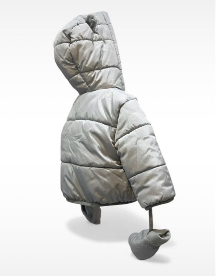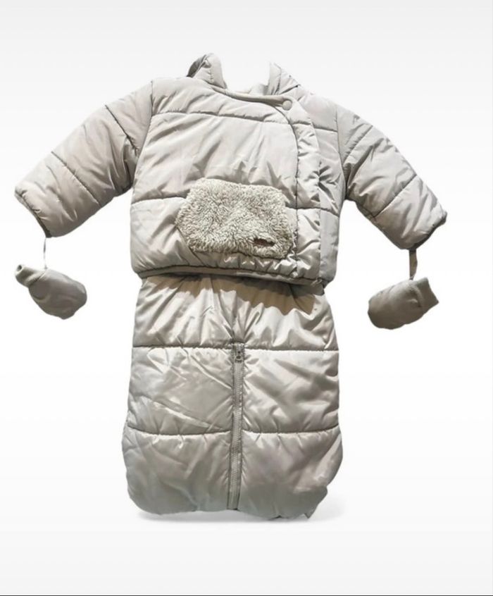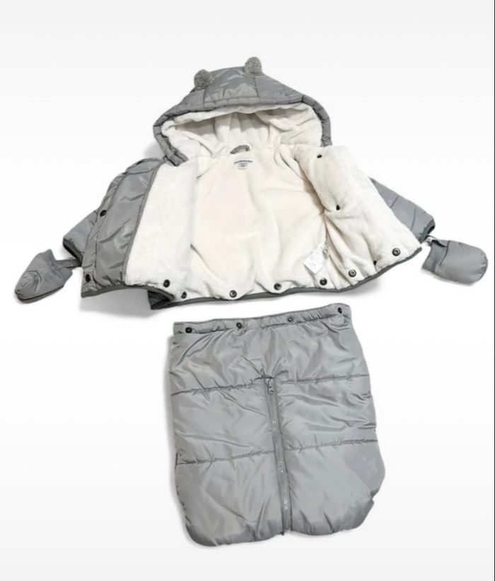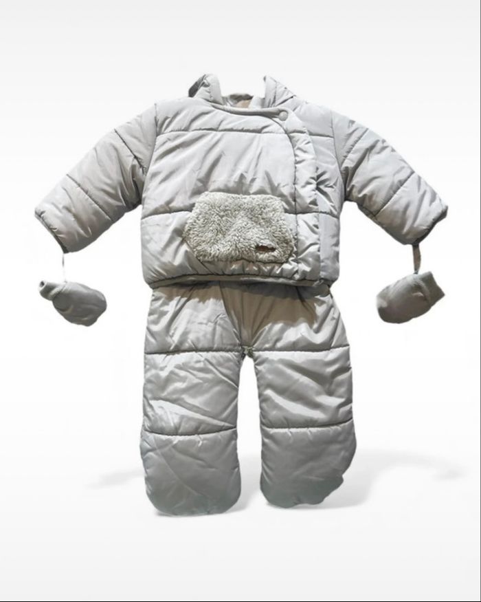 Polaire, Combinaison pilote grise ouatinée 3 en 1, chaud pour l'hiver car entièrement doublée en polaire, très pratique avec son pantalon amovible par pressions à la taille et transformable en gigoteuse. Jamais porté car trop petit au moment de l’hiver pour mon fils