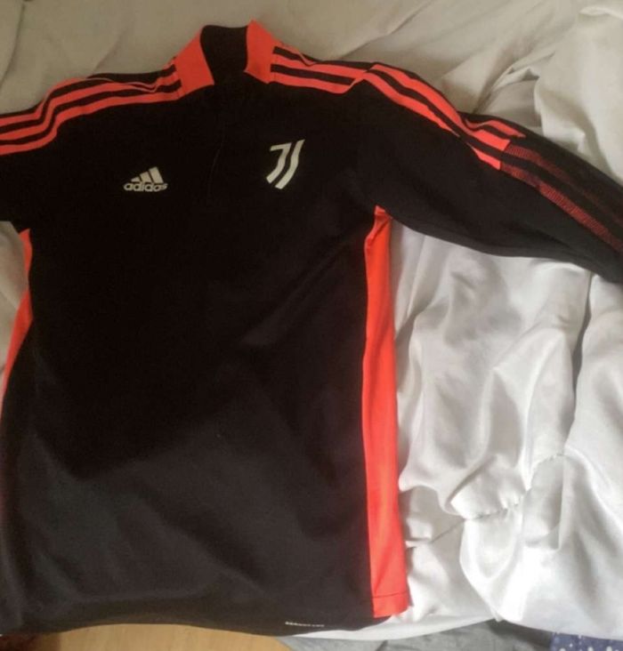 Je vends ce haut de survêtement Juventus de la marque Adidas, en taille S. - Type de produit : Haut de survêtement - Marque : Adidas - Taille : S - Couleur : Noir et rouge - Caractéristiques : Logo Juventus, Bandes rouges sur les côtés N'hésitez pas à me contacter pour plus d'informations ou de photos. 10€ Envoi très soigné possible ou remise en mains propres sur Marseille 13005 souhaitée