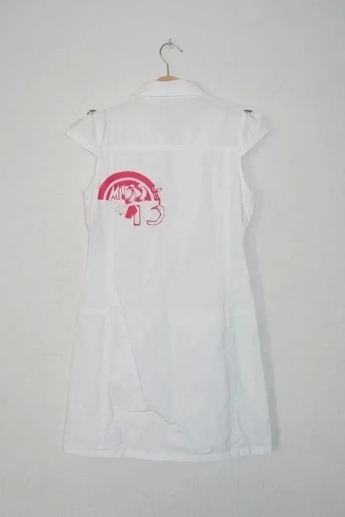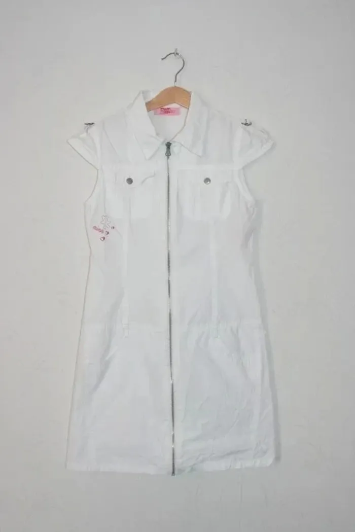 Robe blanche manches courtes zippé à l'avant marque Mini Stereo taille 34 (14 ans), tâches à l'arrière en bas cf photo (255g)