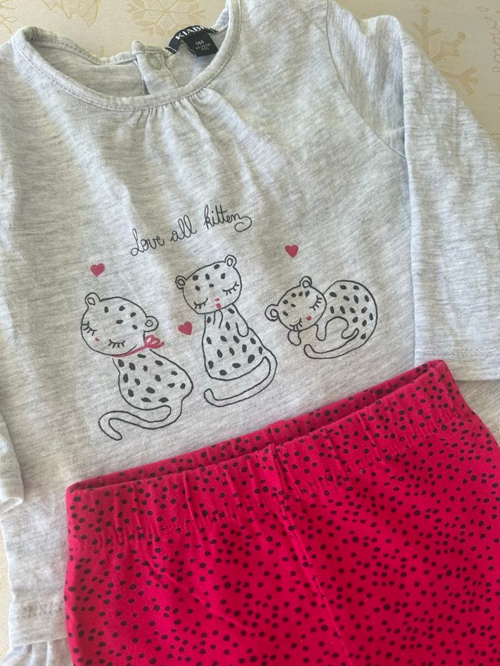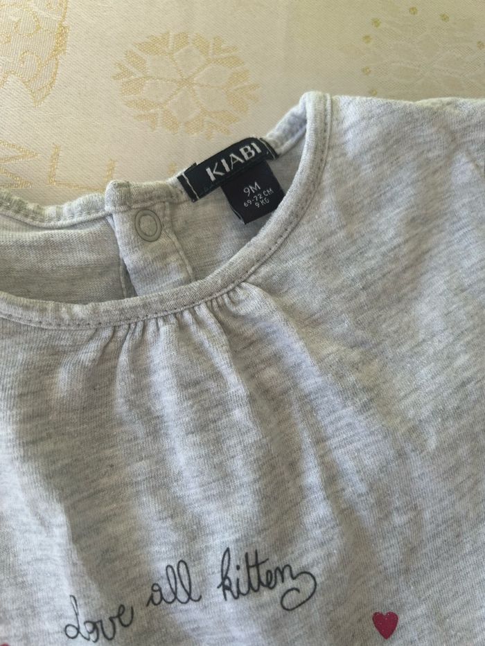 Ensemble 9 mois 69-72 cm comprenant : 1 T-shirt manches longues + 1 legging. Marque Kiabi #kiabi #kiabifille #kiabifille9mois #9moisfille #chat #chatons