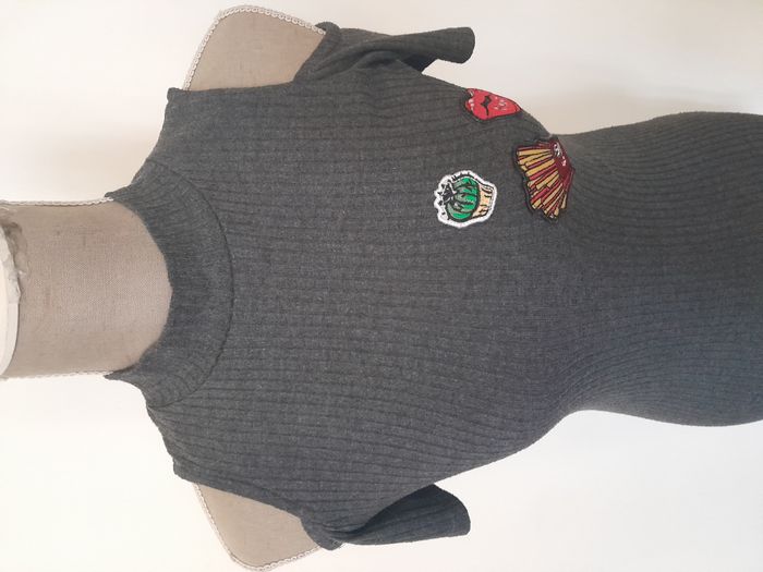 Robe, manche courte, ajouré sur les épaule, écusson en déco devant Longueur : 85cm Aiss / Aiss : 40cm Matière : 95 % Coton, 5 % Elasthanne
