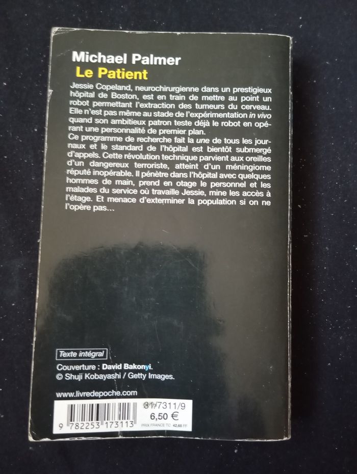Je vends ce roman policier "Le Patient" de l'auteur Michael Palmer. - Titre : Le Patient - Auteur : Michael Palmer - Genre : Policier - Éditeur : Le Livre de Poche État satisfaisant N'hésitez pas à me contacter pour plus d'informations !