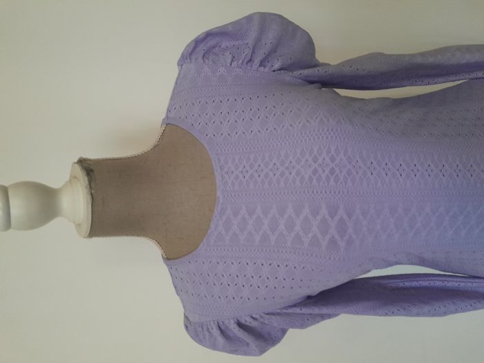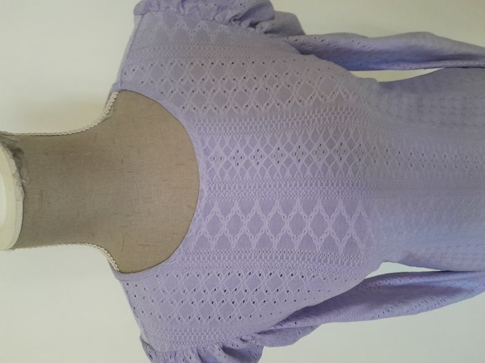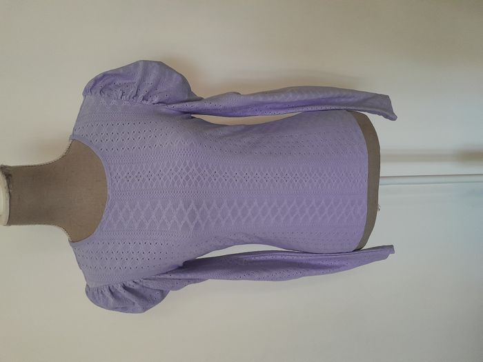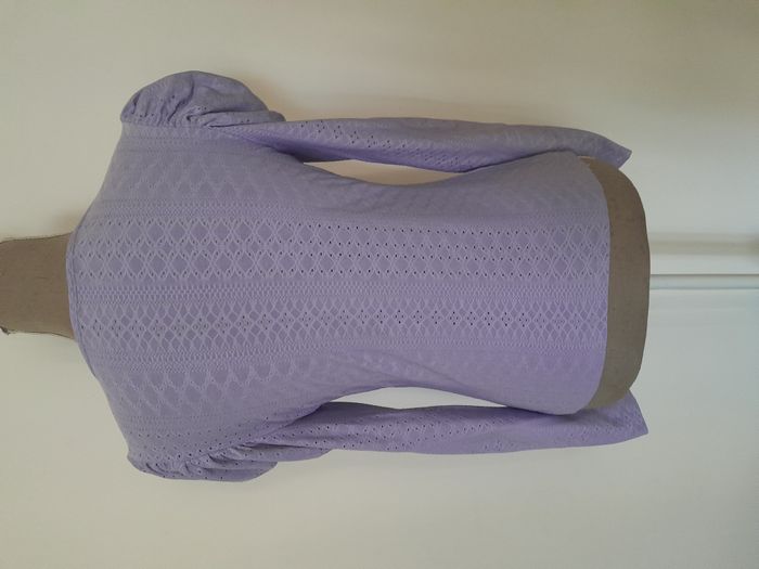 T-shirt, manche longue bouffante sur le haut, ajouré Longueur : 54cm Aiss / Aiss : 43cm Matière : 95 % Polyester, 5 % Elasthanne Marque : sans étiquette