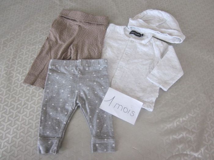 1 m, ensemble gilet + bonnet assorti (neufs) + 2 leggings, h&m, in extenso