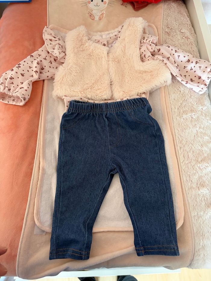 Ensemble jeans, pull et veste sans manche 1 mois  - photo numéro 1