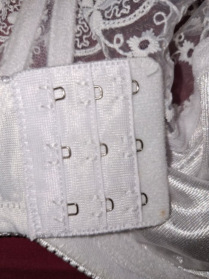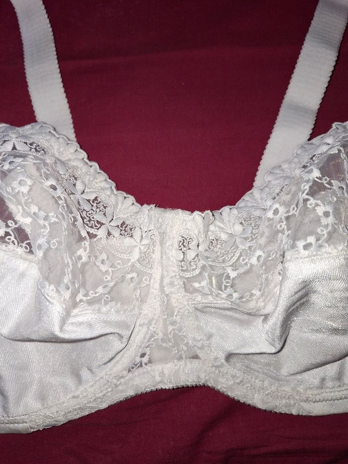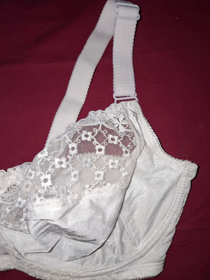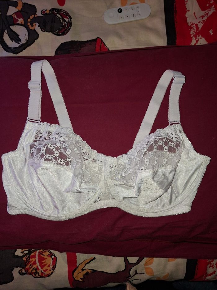 Vends superbe soutien-gorge de la marque Caralino, coloris blanc pur. Un modèle à la fois élégant et confortable, idéal pour un bon maintien. ​Détails : Haut des bonnets en dentelle transparente avec broderies fleurs délicates. Bas des bonnets satiné. ​Maintien : Bretelles larges et réglables pour plus de confort, fermeture au dos par 3 crochets (3 niveaux de réglage). ​Taille indiquée sur l'étiquette : * FR / ES : 110E ​EUR : 100E ​UK / US : 46E ​Composition : 85% Polyester, 15% Spandex. ​État : Très bon état (propre, élastiques fermes).