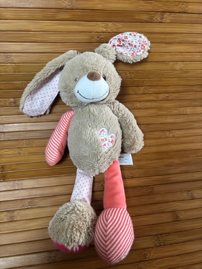 Doudou lapin beige rose cœur tao tape à l œil  - photo numéro 1