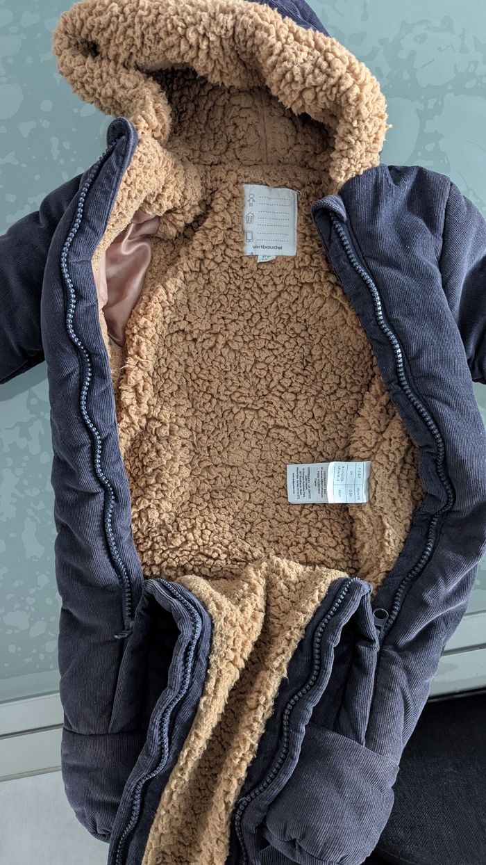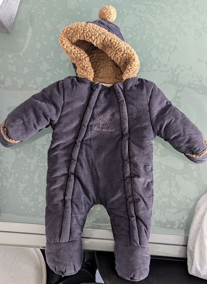 Combi pilote de la marque Vertbaudet en 3 mois fourré a l'intérieur et en très bon état. Attention il y a eu une erreur d'impression de Vertbaudet sur la taille au niveau du cou mais l'étiquette intérieur indique bien 3 mois ( taille réelle)