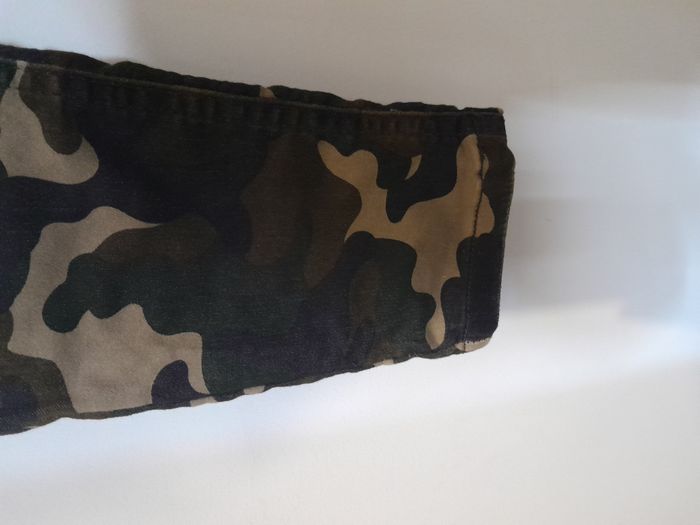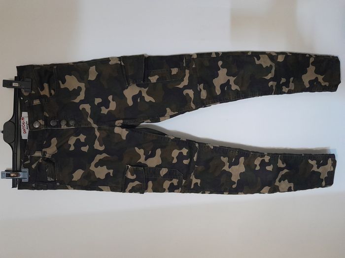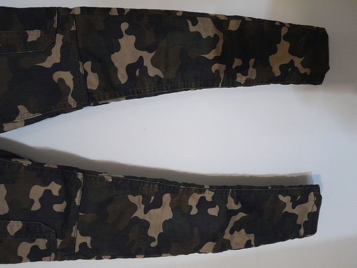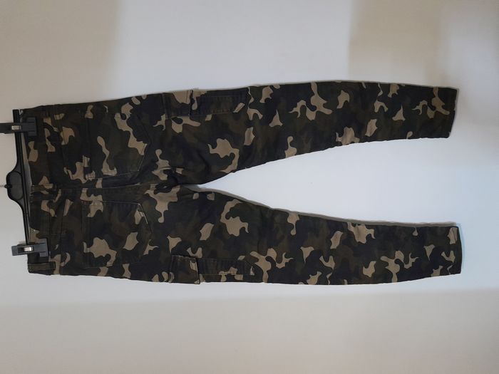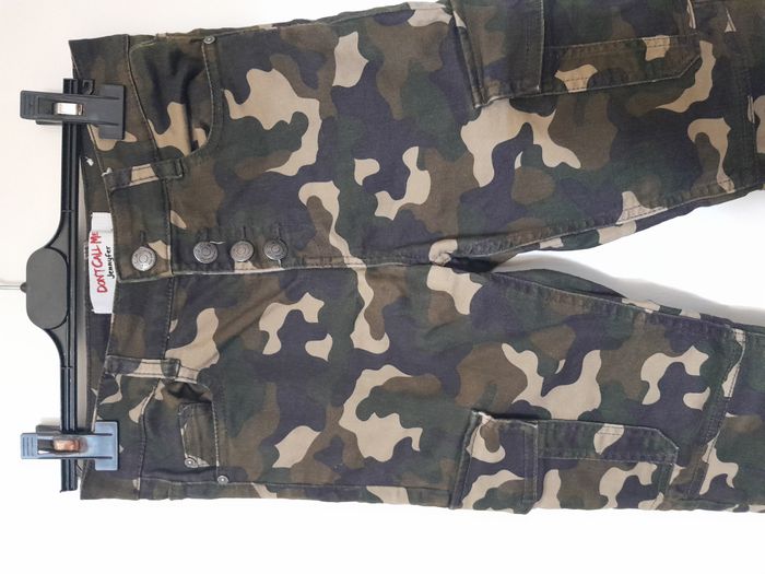 Jean, façon camouflage, 5 poche + 2 sur les cuisse Longueur : 95cm Taille en cm : 34 Matière : 76 % Coton, 23 % Polyester, 1 % Elasthanne