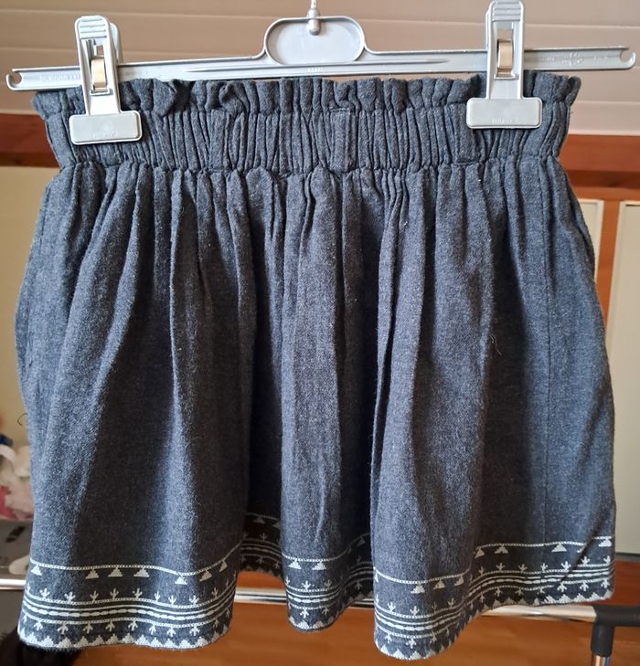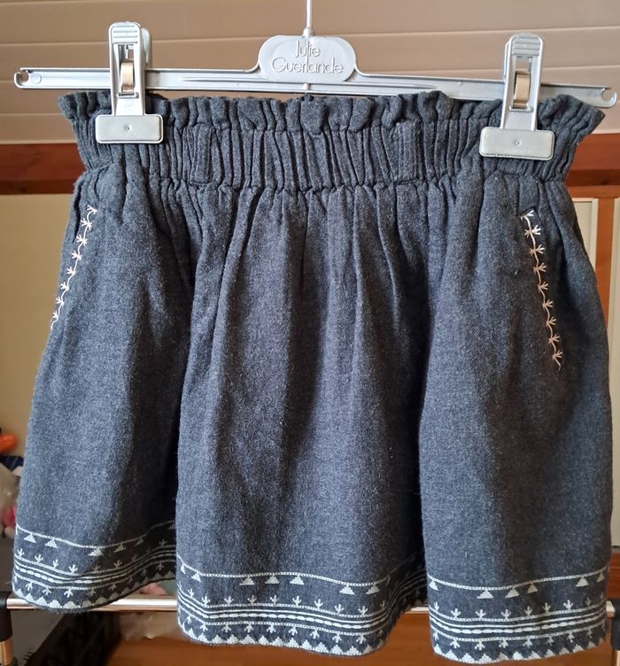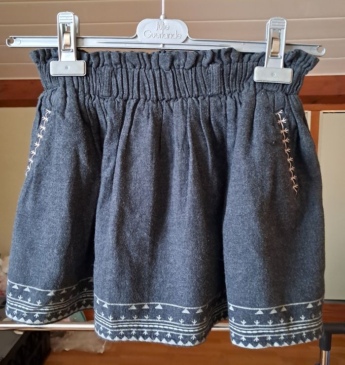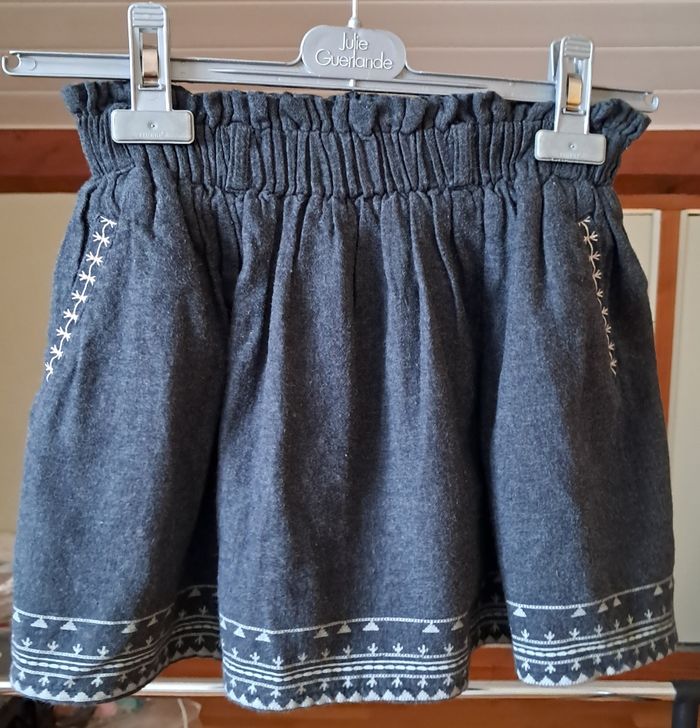 Jolie jupe grise avec motifs poches et bas, élastique à la taille, entièrement doublée Taille 6 ans