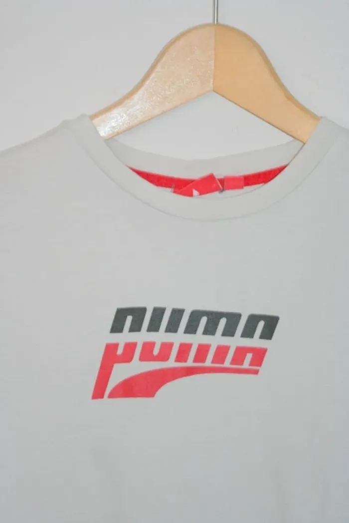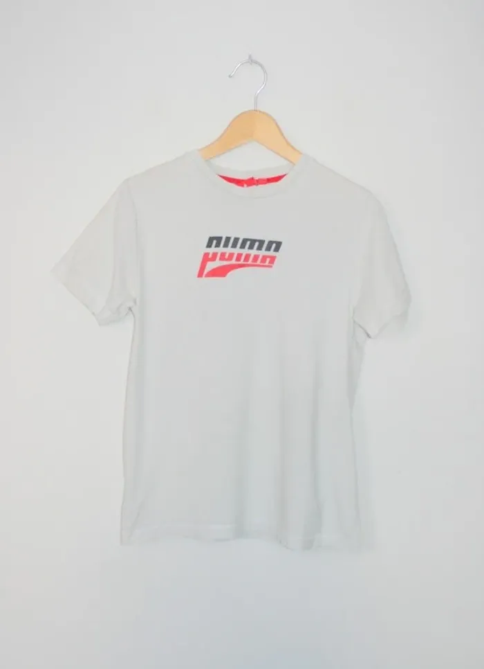 Tee-shirt Puma blanc 14 ans, blanc un peu grisé, toute petite tâche en bas à l'arrière, 150g
