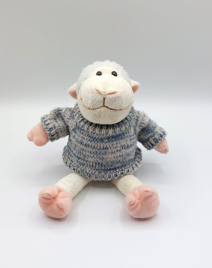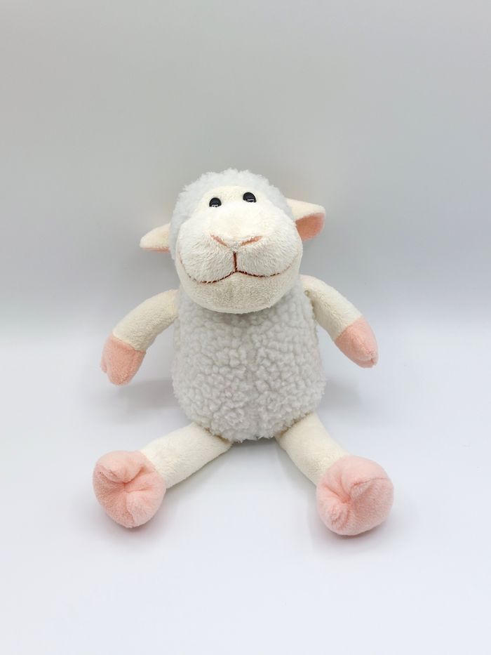 ⚠️ PAS D'ENVOI PAR RELAIS COLIS Peluche doudou mouton blanc avec pull PLAY BY PLAYTOYS 2010 pattes rose Longueur 26 cm allongé Bon état, lavé - petit manque de poils par endroits (exemple sur photo 7) - étiquette effacée d'un côté Envoi rapide 👋 Vendeur professionnel – articles soigneusement sélectionnés, nettoyés et vérifiés avant expédition. Réf A12749 #peluche #doudou #mouton #playbyplaytoys #plush